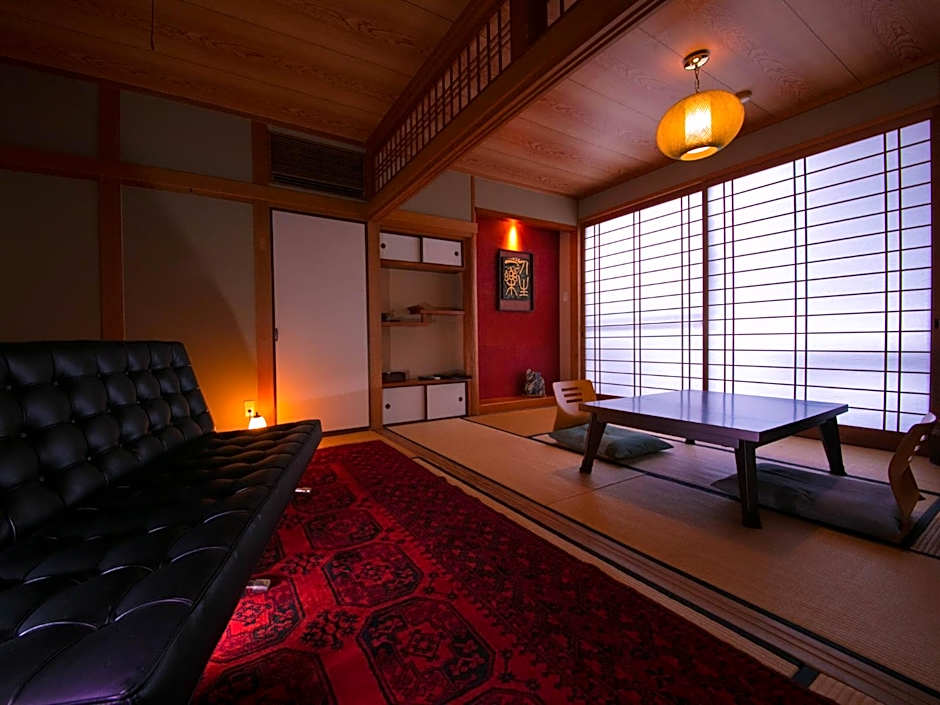 This family room features a private open-air bath. The spacious family room offers air conditioning, tatami, a terrace with garden views as well as a private bathroom featuring a shower. The unit offers 2 beds and 4 futons.